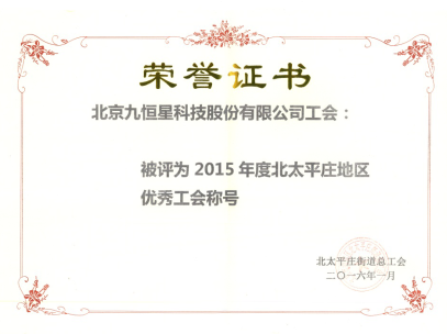 九恒星获评“2015年度北太平庄地区优秀工会”称号