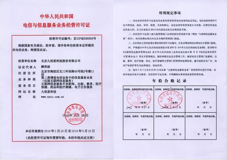 九恒星顺利通过2015年度电信与信息服务业务经营许可证年检
