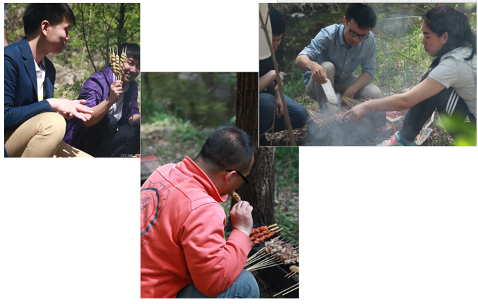 中午时分,饥饿疲惫的小伙们终于历尽千辛到达了期待已久的BBQ基地。烧烤正式拉开了帷幕。扇风、加碳、翻烤…… 诱人的香味扑鼻而来,欢声笑语随着缕缕炊烟萦绕在空中,大家边吃边聊,在相互协作中充分享受着“自己动手,丰衣足食”的乐趣,之前的疲惫瞬间消失的无影无踪。烧烤一直持续到下午三点钟,食物几乎被大家“洗劫一空”。