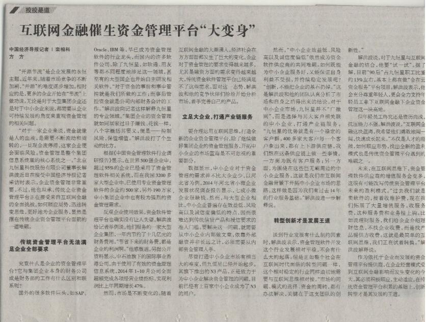 解洪波专访—互联网金融催生资金管理平台“大变身”(中国经济导报)