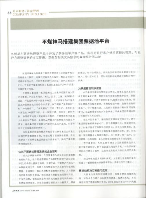 案例赏析—九恒星助力平煤神马搭建集团票据池平台(上海国资)
