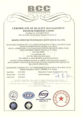 近期,北京九恒星科技股份有限公司再次获得由北京新世纪认证有限公司颁发的质量管理体系认证证书。对于公司内部,意味着九恒星性将进一步强化管理,提高人员素质和企业文化;同时,在外部提升行业影响力,促进国内和国际间的经济合作和技术交流。