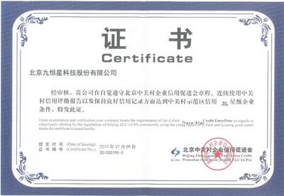 九恒星信用再升级,获评中关村示范区信用三星级企业