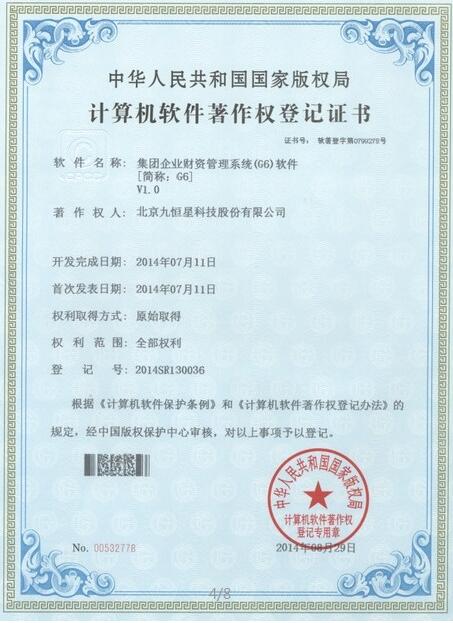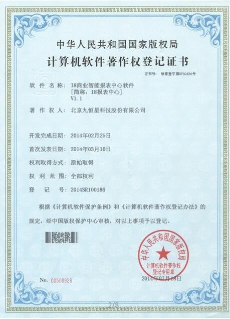 九恒星金在、I8报表中心和G6三个产品获计算机软件著作登记权