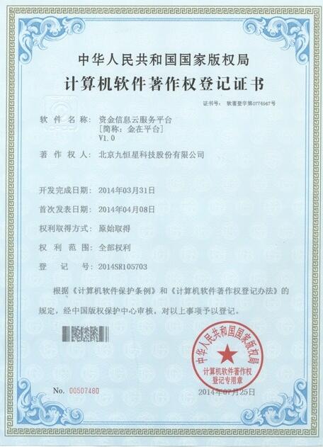 近日,北京九恒星科技股份有限公司旗下“金在平台”、I8报表中心和G6集团企业财资管理系统均获得了由中华人民共和国国家版权局颁发的计算机软件著作登记权证书,标志着九恒星公司产品类型的进一步完善,也体现九恒星将在更多的领域为国内企业提供资金管理方面的助力和支持。