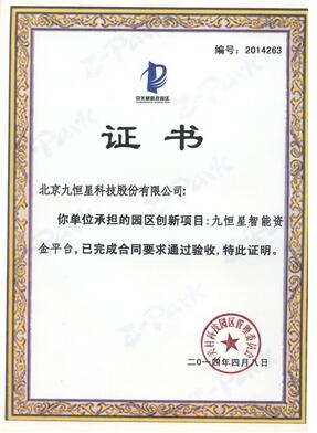 近日由北京九恒星科技股份有限公司承担的中关村科技园区创新项目之一“九恒星智能资金管理平台”已正式通过了项目验收。