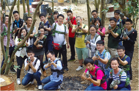 随后,在导游的带领下,大家选好装备,经过教练的简单培训,大家已然了解CS野战要领,迅速组成两队开始了精彩激烈的CS野战——战术是取得胜利的关键因素,大家配合紧密,各负其责——冲锋、掩护、佯装阵亡,两队势均力敌,僵持不下,玩的就是团队战斗力。