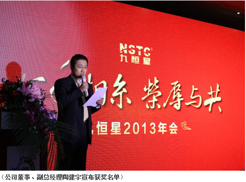 年会期间,公司董事、副总经理陶建宇先生代表公司为九恒星2012年表现优异的团队与个人进行了表彰与颁奖。