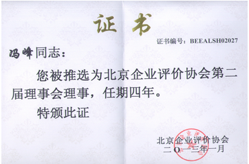 九恒星质量管理部经理冯峰被推选为北京企业评价协会第二届理事会理事