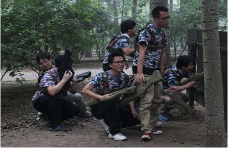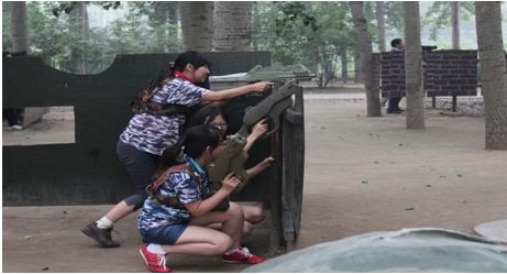 活动另一边,是另外一组童鞋们的真人CS比赛,该组同样被分成了绿、蓝两队进行对抗。对于这样的活动,男同事们自然是热情高涨,女同事们也不甘示弱,很多女同事虽然第一次接触枪械,但是使用起来却得心应手,大有“巾帼不然须眉”之势,比赛中更是展现“杨门女将”之威,相互配合,沉着应对。通过真人CS这种对抗激烈的比赛,向大家展示了以九恒星为代表的科技类创新企业女员工所具有的独特气质。