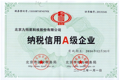 据北京市海淀区地税局有关负责人介绍:“纳税信用A级企业不是终身制,每两年进行一次A级企业评定,有效期为两年。九恒星此次获信用A级企业,是继2011年后再一次连续获得该荣誉”。公开资料显示,纳税信用分为A、B、C、D四个等级。A级为良好纳税信用,B级为一般纳税信用,C级为不良纳税信用,D级为最不良纳税信用。作为鼓励政策,北京市税务部门对A级纳税信用企业除了专项、查案等需求外,将采取“免打扰”式监管方式,A级纳税信用企业不仅享受到两年内免除日常税务稽查,还有包括开辟“绿色通道”、特约服务、简化发票购领程序等多项优先政策。