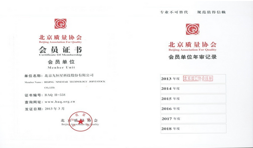 九恒星再次通过北京质量协会会员单位资格审核