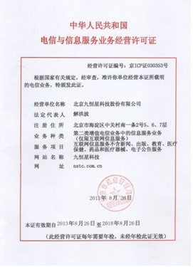 在一年一度的业务许可审核中,北京九恒星科技股份有限公司再次获得中华人民共和国电信与信息服务业务许可证,标志在今后九恒星公司将可以一如既往的提供更加优质、权威、专业、高质量的资金管理软件和解决方案。