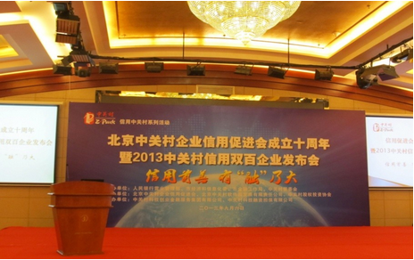 九恒星荣获“2013年中关村百家最具影响力信用企业”奖项