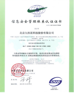 GB/T 22080-2008/ISO/IEC 27001:2005信息安全管理认证助力九恒星发展