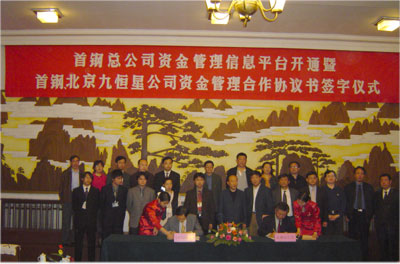 4月30日,九恒星科技公司与首钢总公司正式举行了首钢总公司管理信息平台开通暨签署双方资金管理合作协议的仪式。