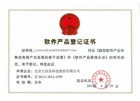 近期,通过北京经济和信息化委员会的综合审核、评定,九恒星企业资金结算管理系统软件V4.9.0凭借其专业水准,顺利通过了《软件产业和集成电路产业发展的若干政策》和《软件产品管理办法》的各项规定,并最终获得软件产品登记证书。