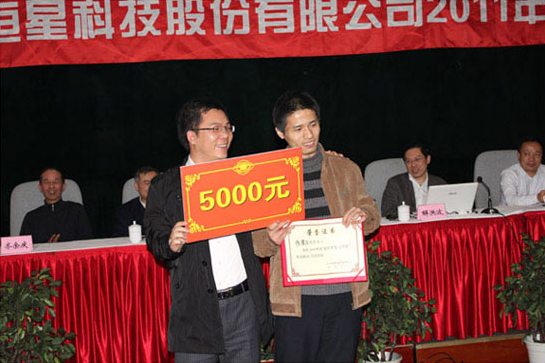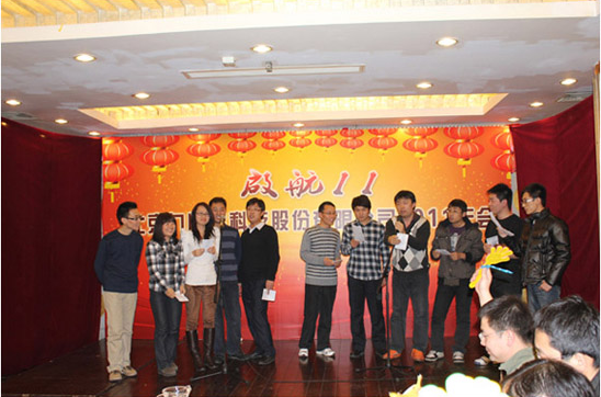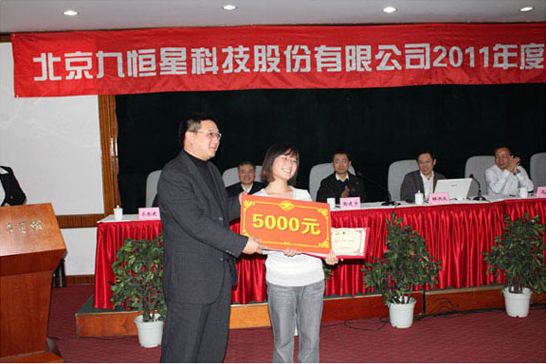 在一片和谐热烈的氛围中,由解洪波总经理宣读了2010年度公司表彰决定,并由解洪波总经理、陶建宇副总经理、冯廷辉副总经理、郭吉宏总监、郭超群总监、齐余庆总监、深圳思凯余棕兴总经理、深圳思凯黄大松副总经理、上海分公司楼科夫总经理,分别为获得九恒星2010年度“最佳开发人员”、“最佳实施人员”、“最佳客服人员”、“最佳销售人员”、“爱公司的好员工”、“爱员工的好经理”及通过培训获得“认证工程师”的优秀员工颁发了荣誉证书及奖金。