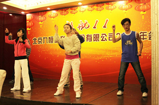 劲爆的街舞,舞出了九恒星人的青春活力,展示了九恒星人蓬勃向上的精神,也为以“启航11”为主题的联欢晚会拉开了帷幕,上海分公司的《沪剧清唱》、软件开发部的合唱《我的未来不是梦》、幽默诗朗诵《致橡树》、项目实施部的小品《梦想照不进现实》等节目展示了九恒星人的多才多艺,互动游戏《小白兔过河》、《喝啤酒大赛》、《七拼八凑》等为现场带来了阵阵欢笑,在“猜猜我是谁”环节中,公司领导及中层以上管理人员为胜出者现场派发红包的安排将晚会推向了高潮,最后,在人事行政部员工的手语表演唱《感恩的心》的旋律中,九恒星大家庭的成员们将对新一年的美好愿望制作成许愿卡投入了许愿箱,在美酒佳肴、掌声雷动、欢歌笑语、祝福祈愿中联欢晚会接近了尾声……
