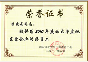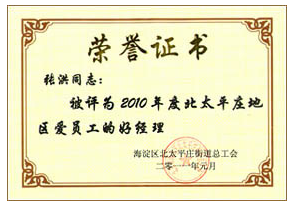 人才的培养,是九恒星长期以来的重点工作,关心员工生活,给予员工广阔的发展空间,在九恒星长期的经营过程中已显现出显著的效益。2010年九恒星员工张洪、凌敏、李晓亮通过在本职岗位上勤奋学习,凭借在技术、业务上突出的表现和取得的优异成绩,在九恒星工会推荐参加的“爱企业好员工”评选活动中荣获“2010年度北太平庄地区爱员工的好经理”、“2010年度北太平庄地区爱企业的好员工”称号。