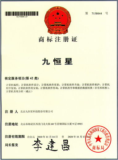 “九恒星”汉字商标的注册成功,是继“NSTC”英文商标成功注册后的又一硕果,九恒星人有信心在日后的经营活动中,通过“商标兴企”提升运用商标参与市场竞争的能力,通过商标保护企业的创新成果和合法权益,丰富“九恒星”商标的内涵,增加“九恒星”商标的附加值,提高“九恒星”商标的知名度,将“九恒星”商标创立成为资金管理领域的知名品牌。