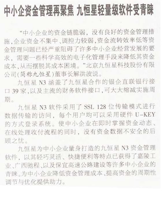 案例赏析—中小企资金管理在聚焦九恒星轻量级软件受青睐(国际金融报)