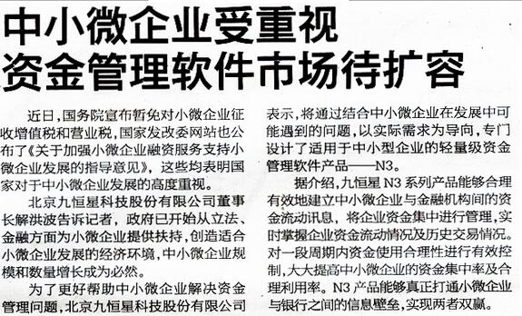 案例赏析—中小企业受重视资金管理软件市场待扩容(法制晚报)