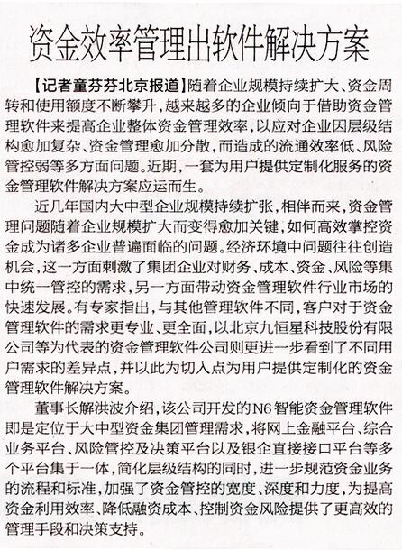案例赏析—资金效率管理出软件解决方案(中华工商时报)