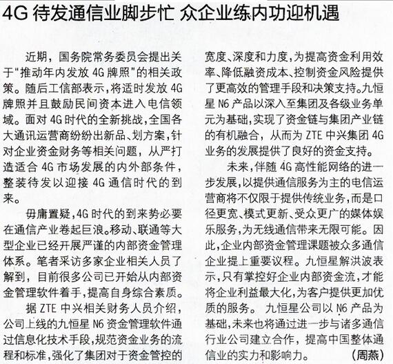案例赏析—4G待发通讯业脚步忙众企业练内功迎机遇(中国产经新闻报)