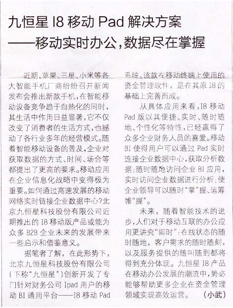 案例赏析—九恒星I8移动Pad解决方案-移动实时办公,数据尽在掌握(中国产经新闻)