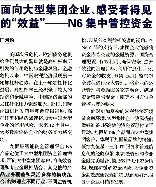 案例赏析—面向大型集团企业、感受看得见的“效益”-N6集中管控资金(商务时报)