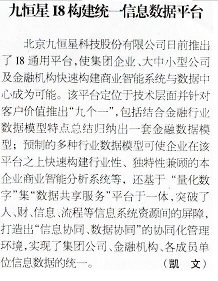 案例赏析—九恒星I8构建统一信息数据平台(中国商报)