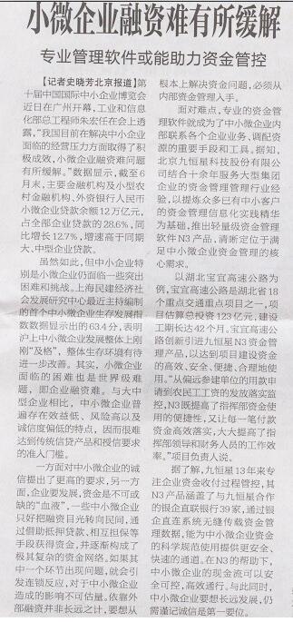 案例赏析—小微企业融资难有所缓解 专业管理软件或能助力资金管控(中华工商时报)