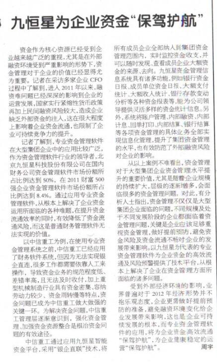 《九恒星为企业资金“保驾护航”》--《西南商报》、《中国贸易报》