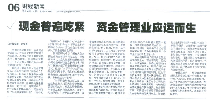 《现金普遍吃紧 资金管理业应运而生》——《经济参考报》