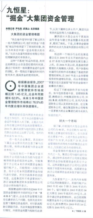 《九恒星:掘金大集团资金管理》——《21世纪经济报道》