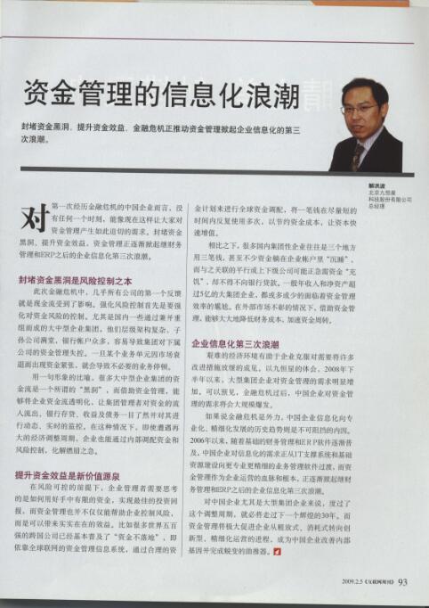 九恒星总经理解洪波署名专栏文章《资金管理的信息化浪潮》在 《互联网周刊》发表——《互联网周刊》