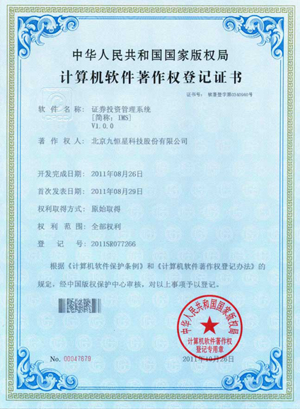 九恒星智能资金平台证劵投资管理系统获软件著作权登记