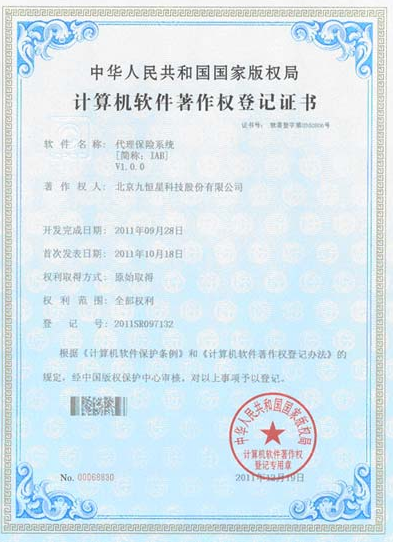九恒星代理保险系统V1.0.0近日获软件著作权登记