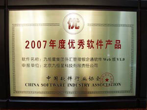 九恒星集团企业外汇管理银企通软件Web版V1.0被中国软件行业协会评为2007年度优秀软件产品