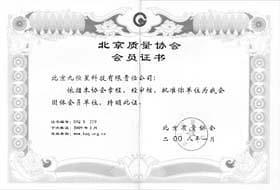 九恒星近日被北京质量协会批准成为其团体会员单位