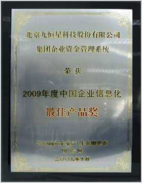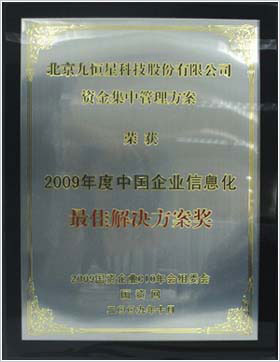 10月22日,在国务院国有资产监督管理委员会研究中心、工业和信息化部电子科技情报研究所联合主办的2009国资企业CIO年会上,九恒星集团资金集中管理方案和九恒星集团企业资金管理系统分别喜获“2009年中国企业金融信息化最佳解决方案奖”及“2009年度中国企业信息化最佳产品奖”两项大奖。