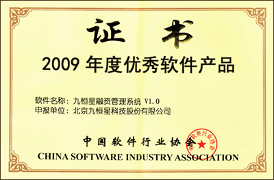 近日,九恒星融资系统V1.0软件喜获中国软件行业协会2009年度优秀软件产品奖。九恒星融资管理系统是为满足集团债务集中管理需求,对集团成员单位的融资活动进行管理和控制而设计开发的软件,集团籍此实现了对成员单位融资活动的了解、管理及掌控,达到了控制融资风险,发挥财力杠杆作用的目的。九恒星融资管理系统为母公司及成员企业提供了融资支持,增加了企业效益,降低了集团整体的融资成本。