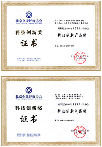 九恒星被评选为2009年北京企业评价协会“科技创新成果奖”、“科技创新产品奖”