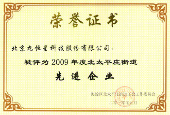 九恒星被海淀区北太平庄街道工会工作委员会评为“2009年度北太平庄街道先进企业”