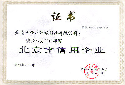 近日,九恒星被北京企业评价协会接纳为协会会员,并被公示为2010年度“北京市信用企业”。