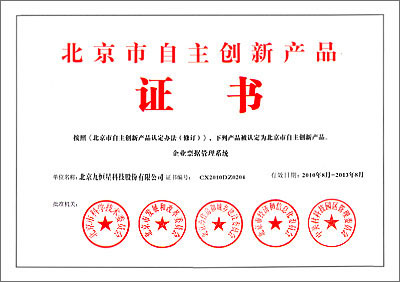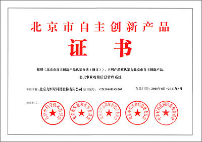 九恒星“智能资金平台” 、“公共事业收费管理系统”、“企业票据管理系统”3项产品被认定为北京市自主创新产品。