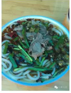 午饭是一碗面,艰难的爬到坡顶才有时间吃。