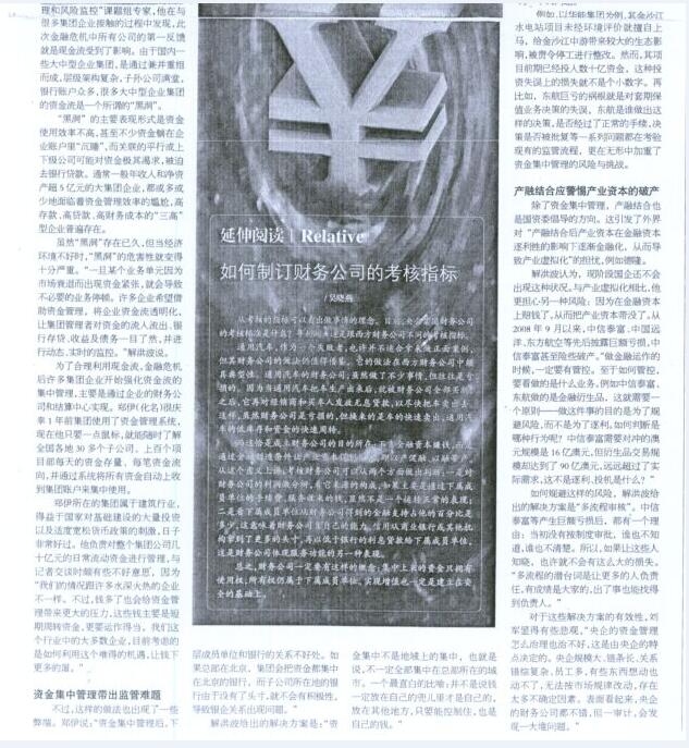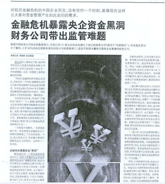 《金融危机暴漏央企资金空洞 财务公司带出监管难题》——《中国经营报》