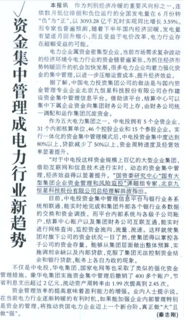《信息化开创企业资金管理新天地》——《中国会计报》